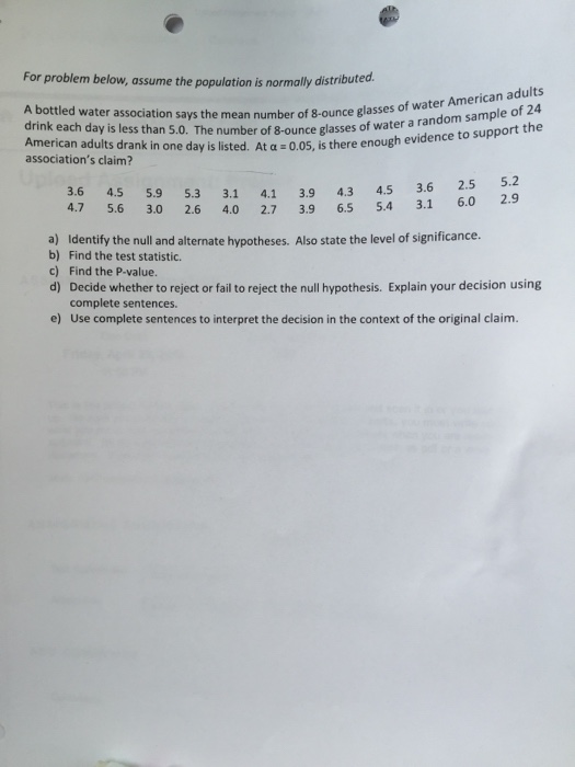 Solved A Bottled Water Association Says The Mean Number O Chegg Com